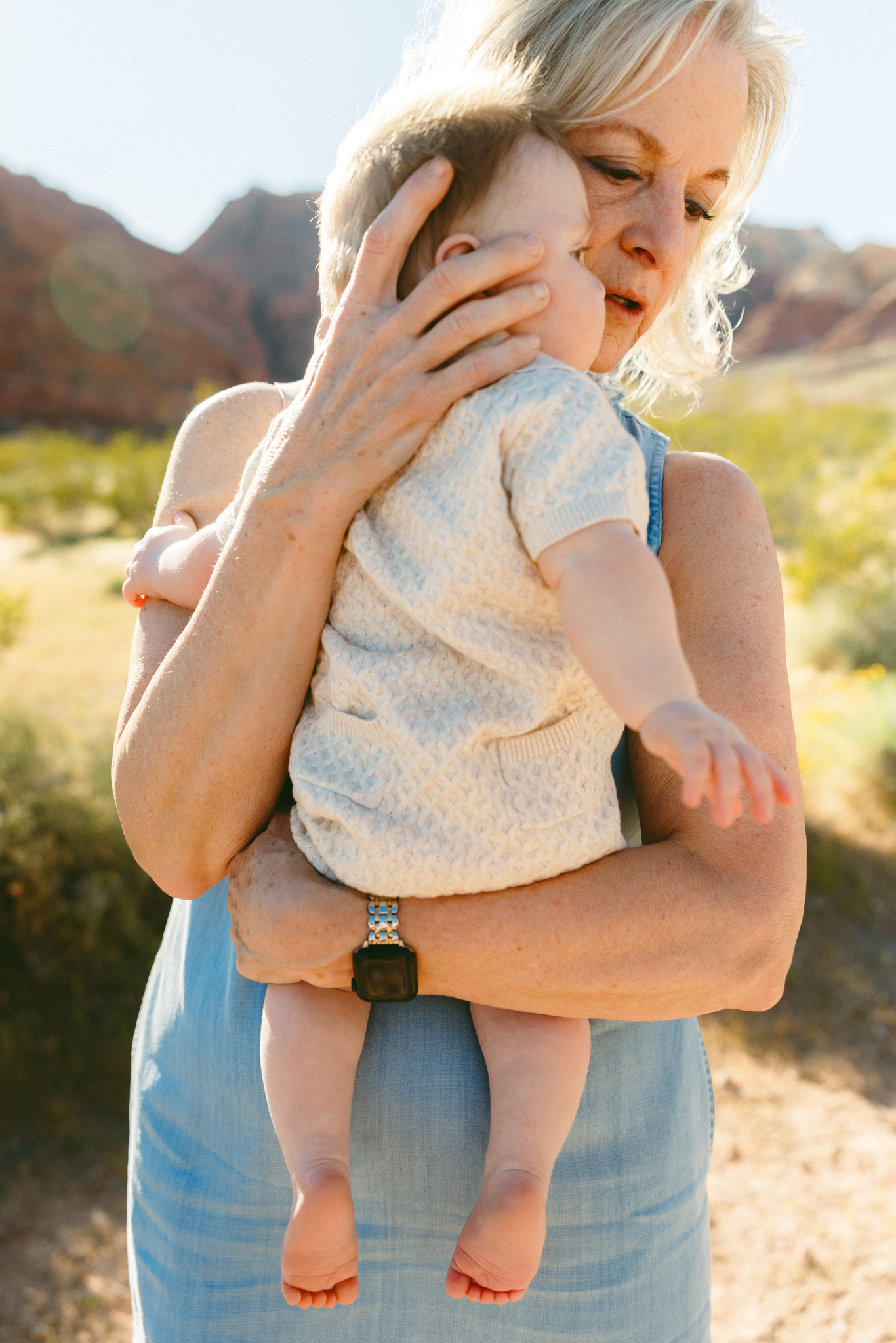 The Red Rock area and up toward Mt. Charleston are my most-recommended spots for extended family sessions in Las Vegas. Both give us wide open landscape, room to breathe, and that desert backdrop that actually looks and feels like Nevada.