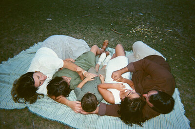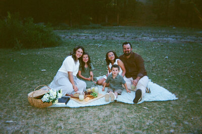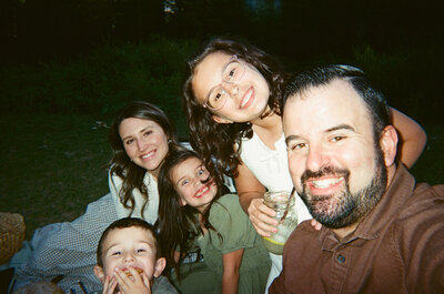 The girls made necklaces with their mom while dad and son explored nearby, pausing to watch wild horses in the distance. A single disposable camera was passed around the blanket, capturing their own playful snapshots alongside the ones I photographed. It was simple, cozy, and filled with love.